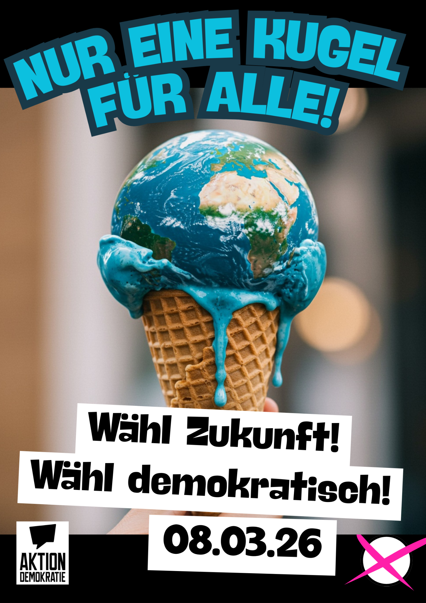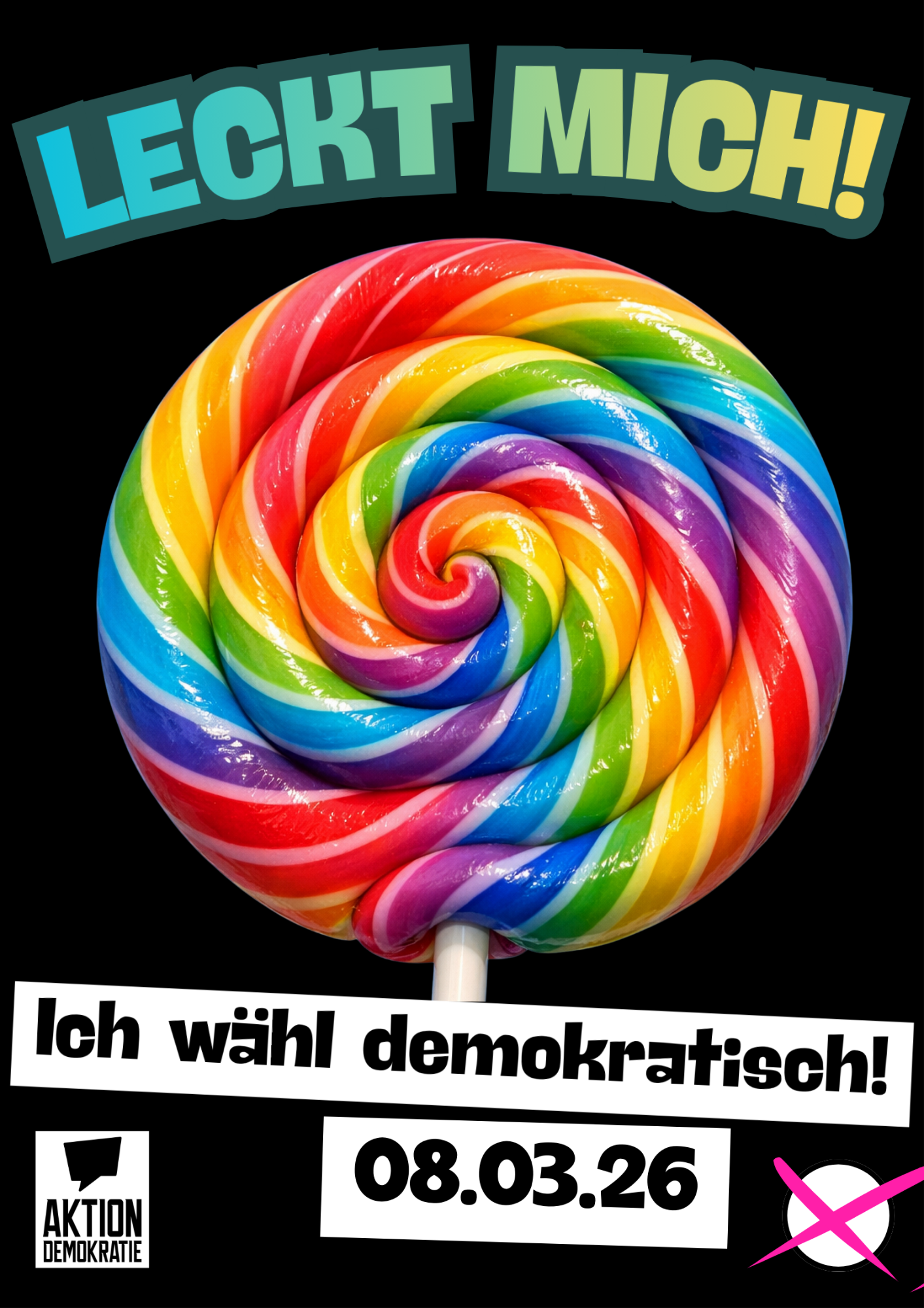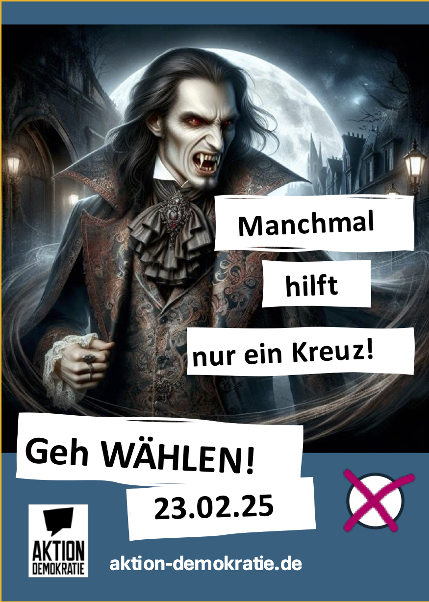 Direkt nach unserer Gründung starteten wir unsere erste Kampagne zur Erhöhung der Wahlbeteiligung bei der Bundestagswahl 2025. Mit unseren unkonventionellen und humoristischen Motive wollten wir Menschen erreichen, die vielleicht durch die klassischen Wege der politischen Bildung weniger angesprochen werden. Die Motive wurden als Plakate, Postkarten und Aufkleber vervielfältigt und über Sociel Media sowie vor Ort in Freiburger Geschäften aufgehängt sowie in der Freiburger Innenstadt verteilt.